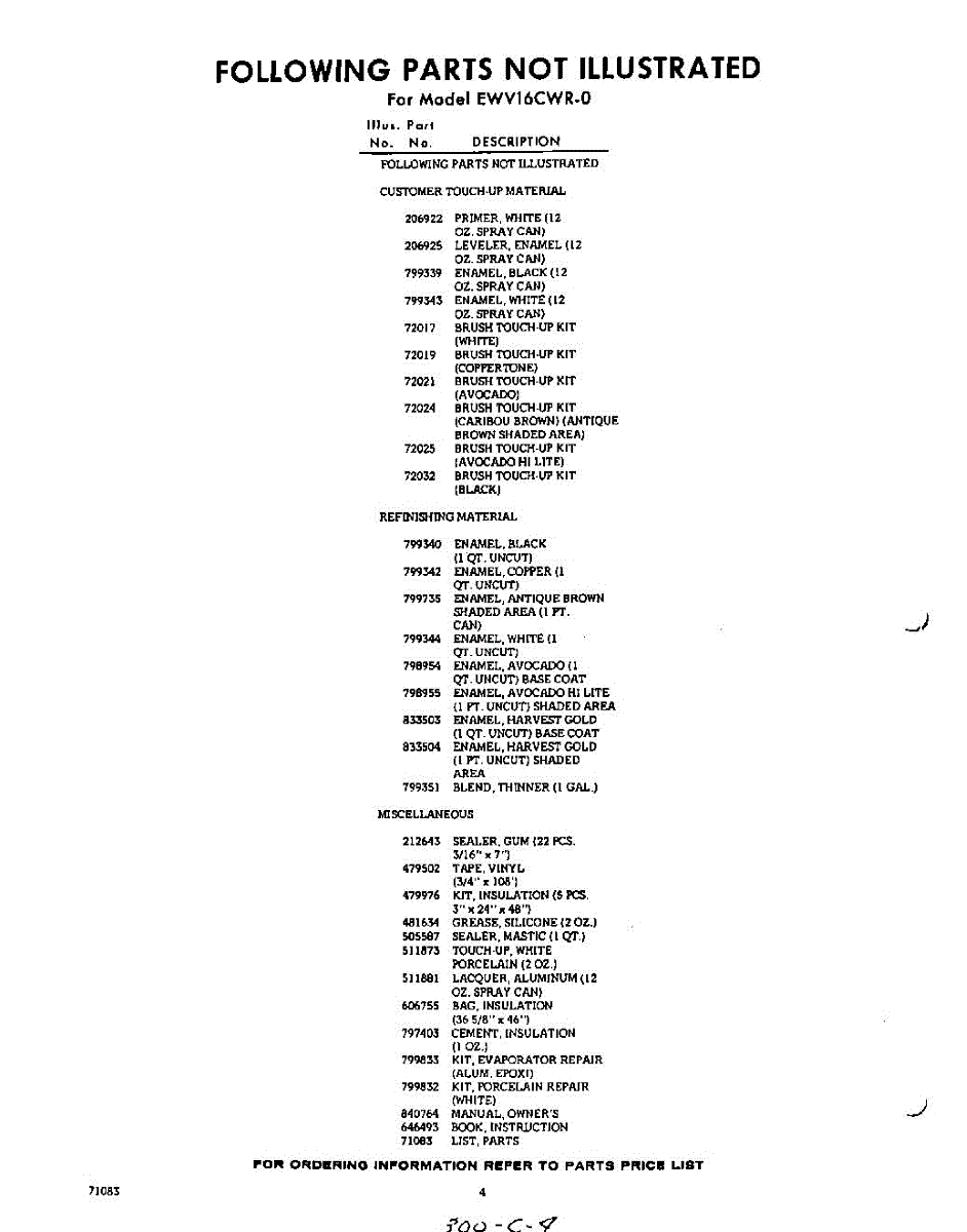 Parts for EWV16CWR0