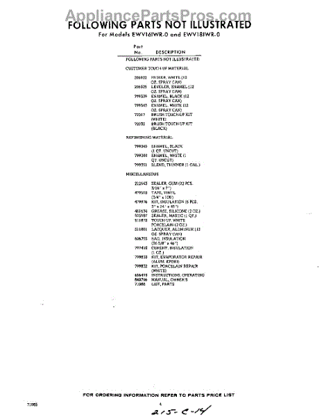 Parts for Whirlpool EWV16IWR0: 04 - Section Parts