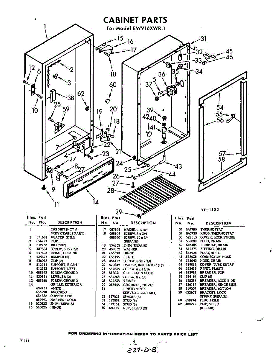 Parts for EWV16XWR1