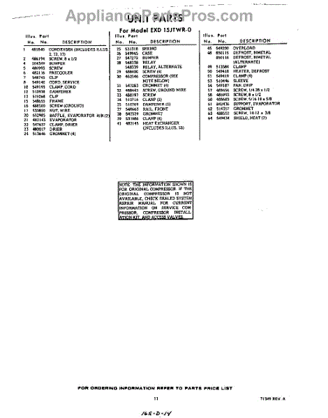 Parts for Whirlpool EXD15JTWR0: 11 - Section Parts