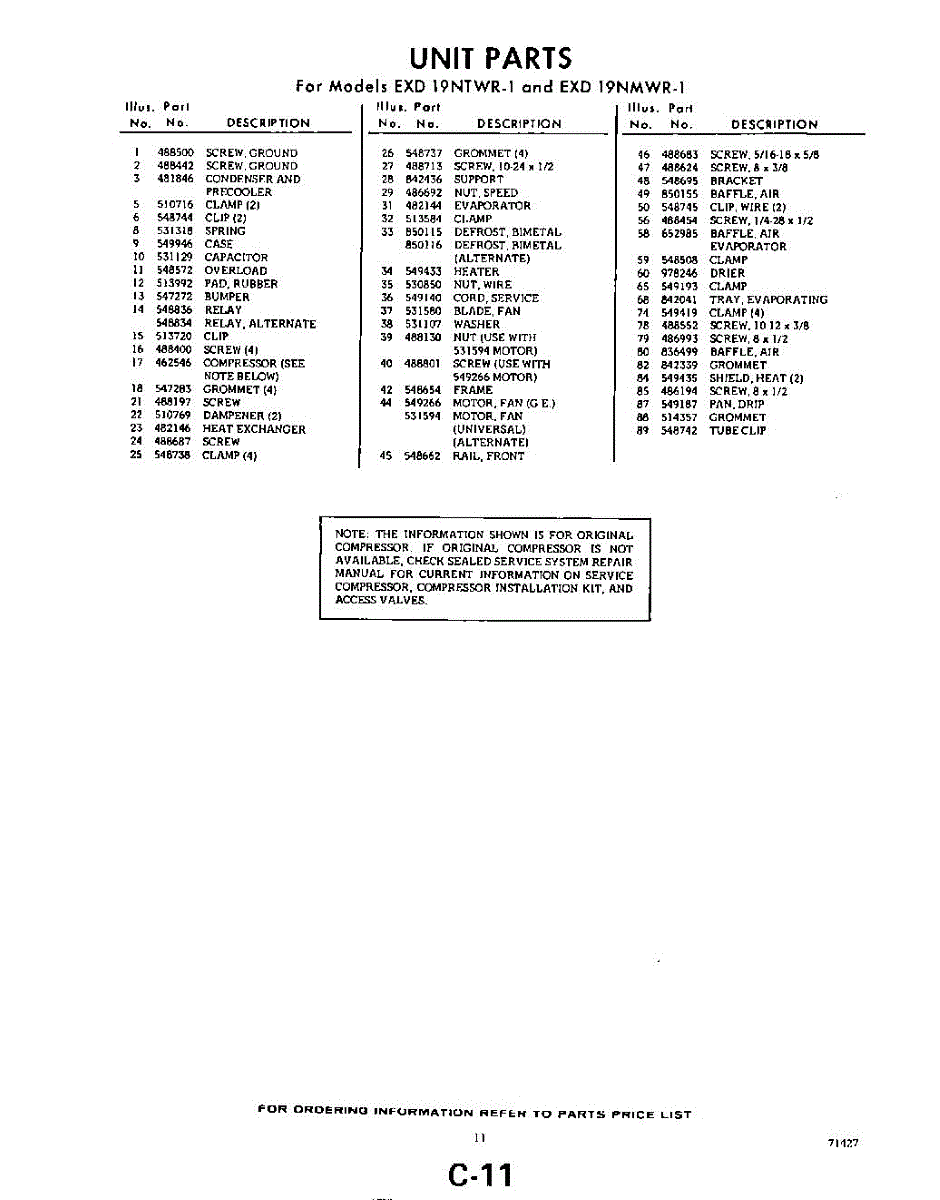 Parts for EXD19NMWR1