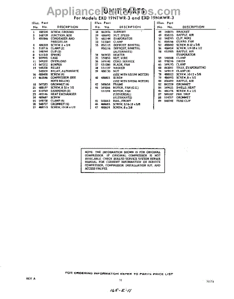 Parts for Whirlpool EXD19NMWR3: 11 - Section Parts