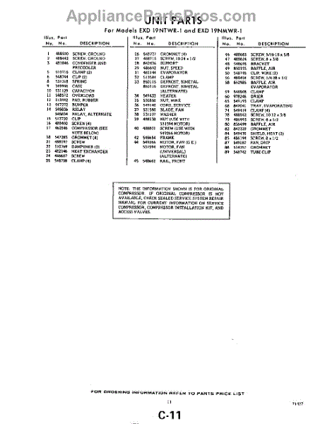 Parts for Whirlpool EXD19NTWR1: 11 - Section Parts