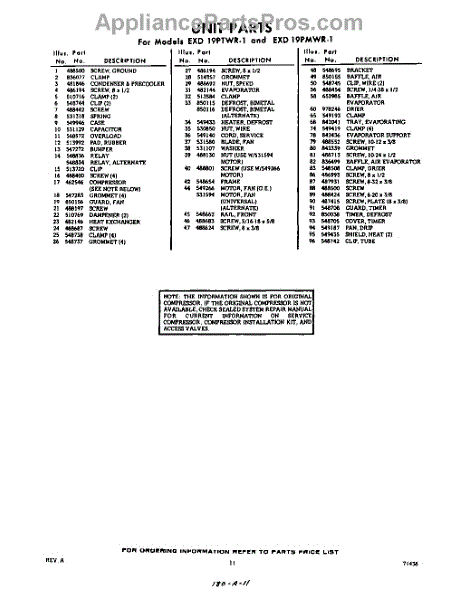 Parts for Whirlpool EXD19PMWR1: 11 - Section Parts