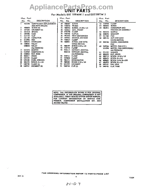 Parts for Whirlpool EXT19PTW1: 09 - Section Parts