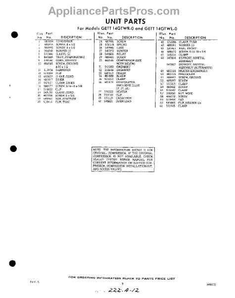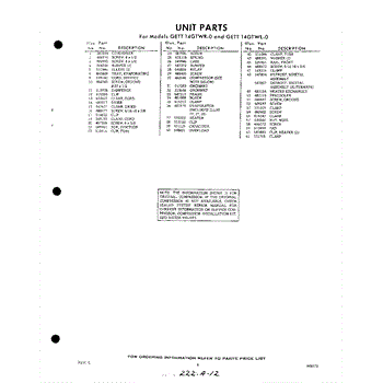 Parts for GETT14GTWR0