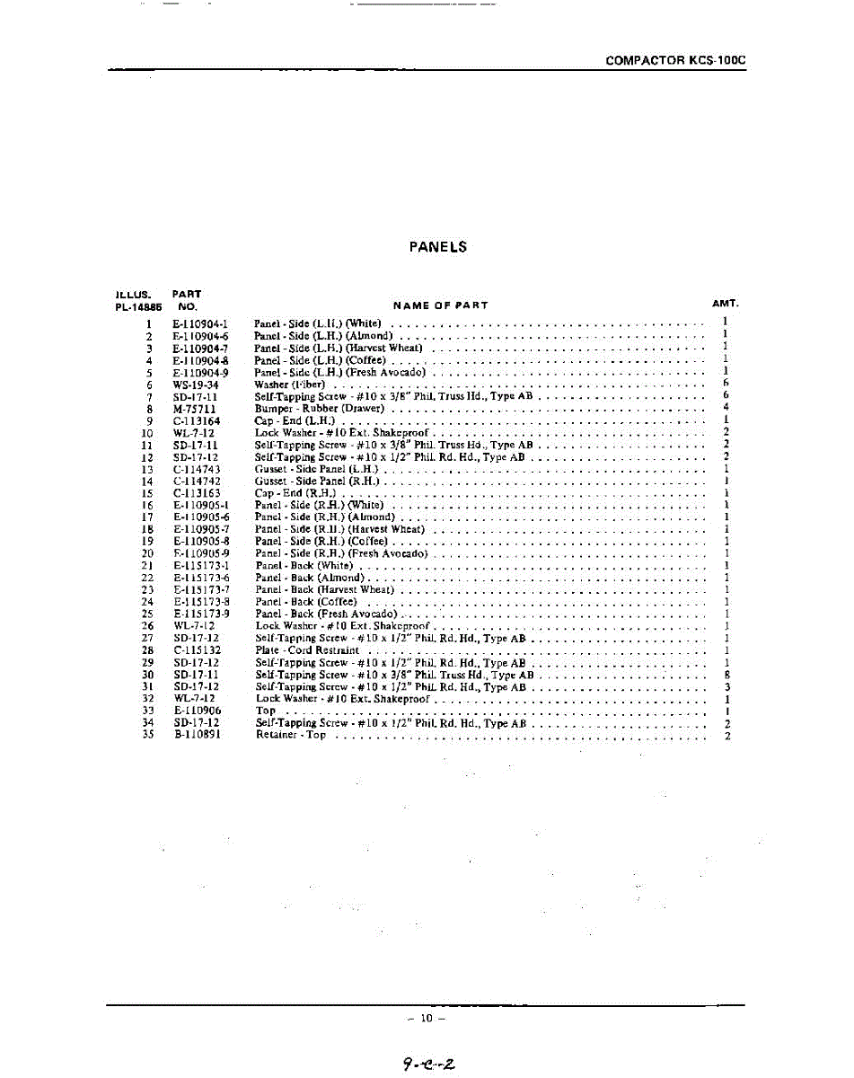 Parts for Kitchenaid KCS100C: 10 - Section Parts
