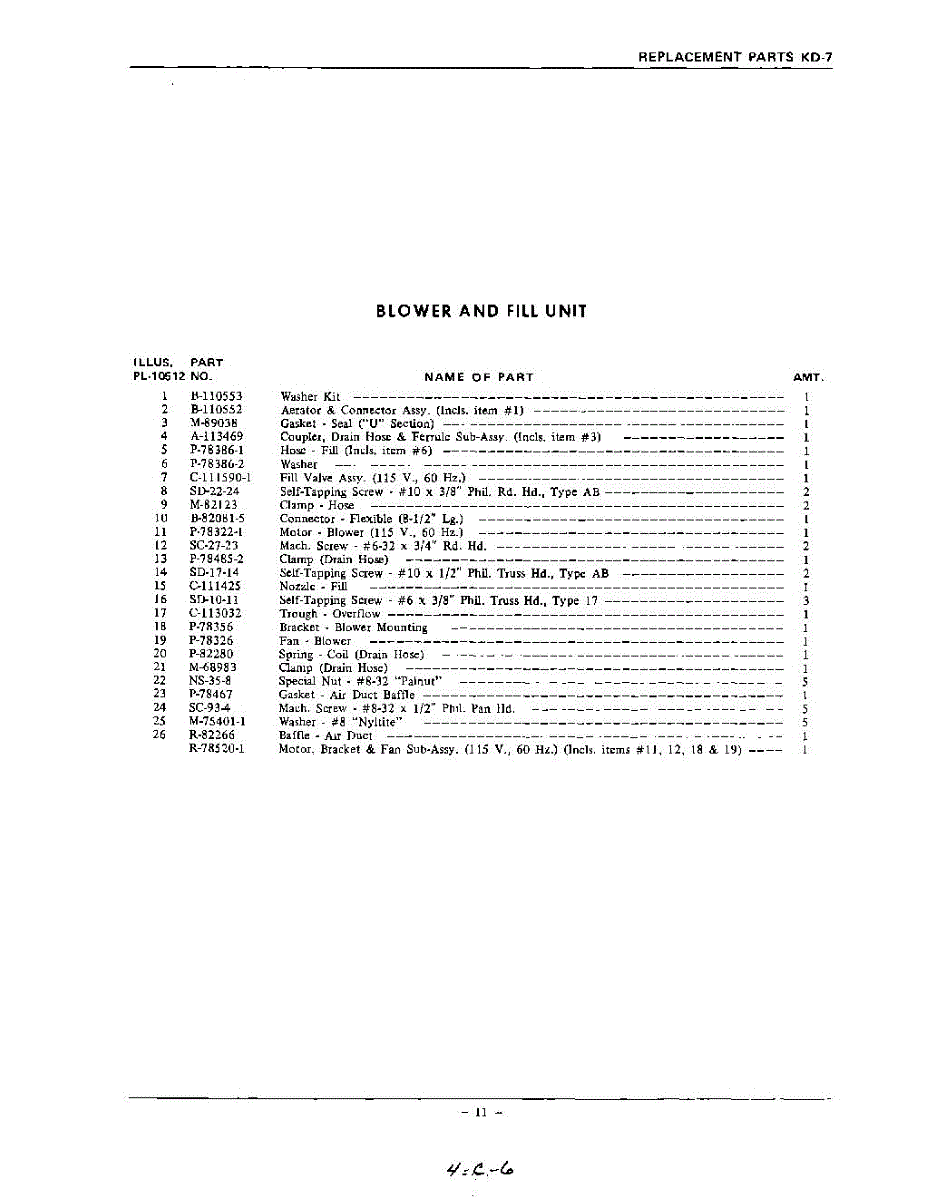 Parts for Kitchenaid KDA7: 11 - Section Parts