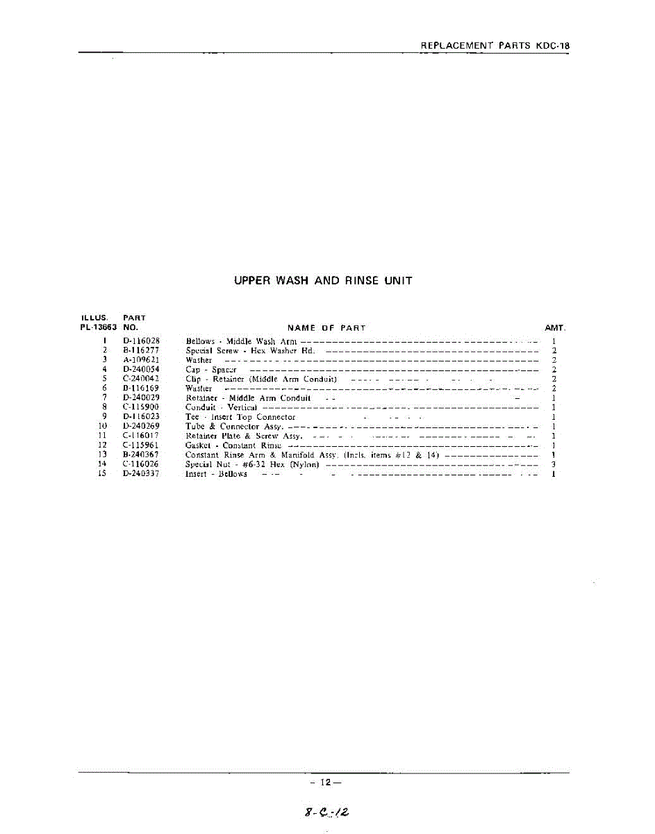 Parts for Kitchenaid KDC58: 12 - Section Parts
