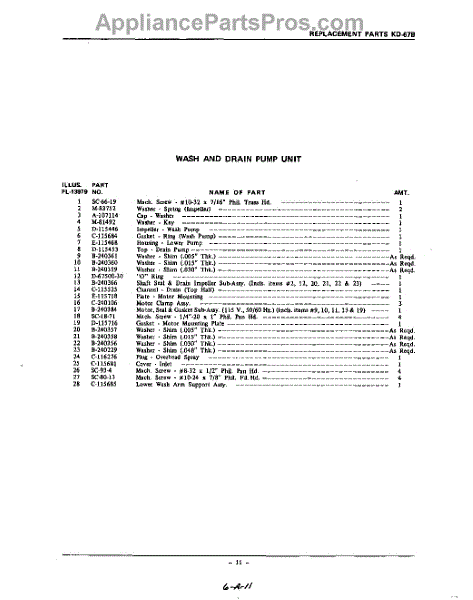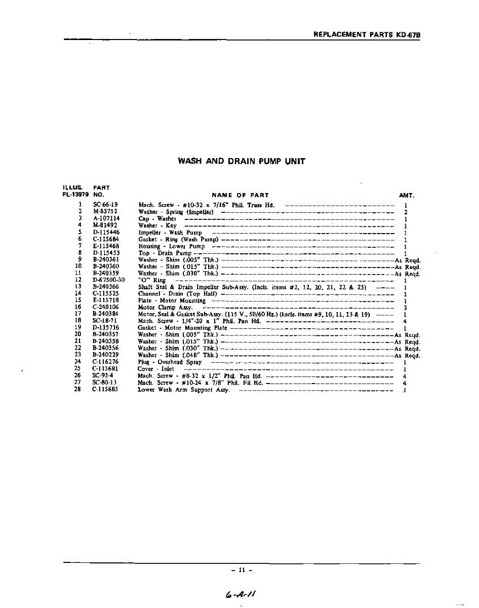 Parts for Kitchenaid KDD67B: 11 - Section Parts
