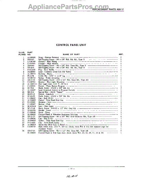 Parts for Kitchenaid KDI57: 11 - Section Parts