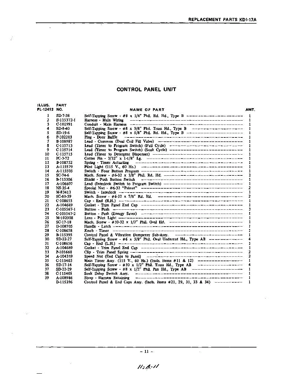 Parts for Kitchenaid KDI57A: 11 - Section Parts