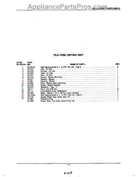 Parts for Kitchenaid KDIS21: 09 - Section Parts