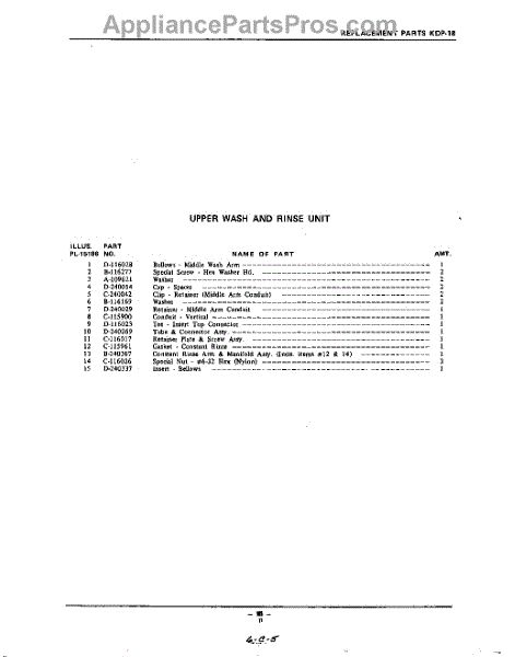 Parts for Kitchenaid KDP18: 11 - Section Parts
