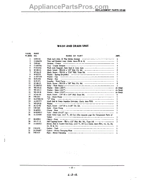 Parts for Kitchenaid KDR66: 12 - Section Parts