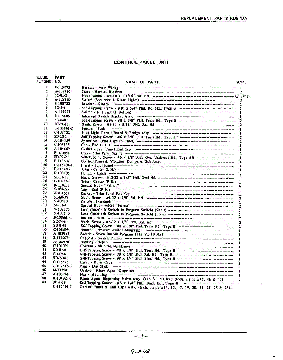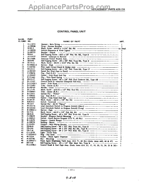 Parts for Kitchenaid KDS57A: 13 - Section Parts