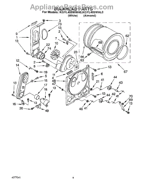 This is a drum assembly intended for use with dryers. This part can be found inside the dryer and is responsible for holding clothing while a cycle is running. It holds wet laundry while loading the appliance. Over time and with use, the drum assembly can start to wear out. This can cause the dryer to squeal, start and stop during a cycle, make buzzing noises, or seize up.If the drum assembly is damaged, it will need to be replaced. Make sure to have basic tools and a pair of work gloves ready. The dryer should be turned off and unplugged from the wall. Raise the top panel, remove the front panel, and then remove the drum. The drum support roller should be taken out and installed on the new drum. Reinstall with the new component and reassemble all parts before use.The drum assembly is made to be used with dryers and washer/dryer combos from Inglis, Estate, Admiral, Crosley, Roper, Magic Chef, Amana, KitchenAid, Maytag, Kenmore, and Whirlpool. It is a genuine OEM replacement part that is sourced directly from the manufacturer. The part is sold on an individual basis.