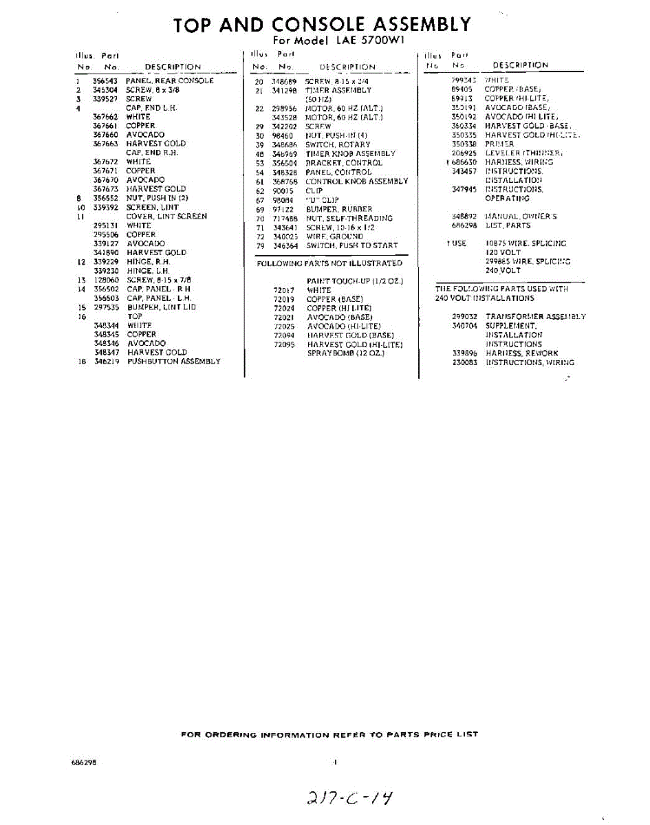 Parts for Whirlpool LAE5700W1: 04 - Section Parts