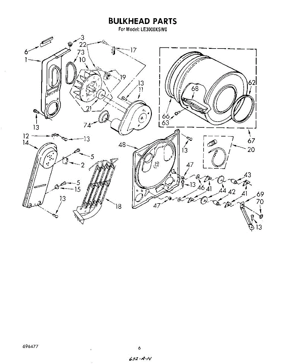 Replacement drum front bulkhead for dryers. Installs at the front of the drum assembly. Needed when original is cracked, damaged, or worn out.