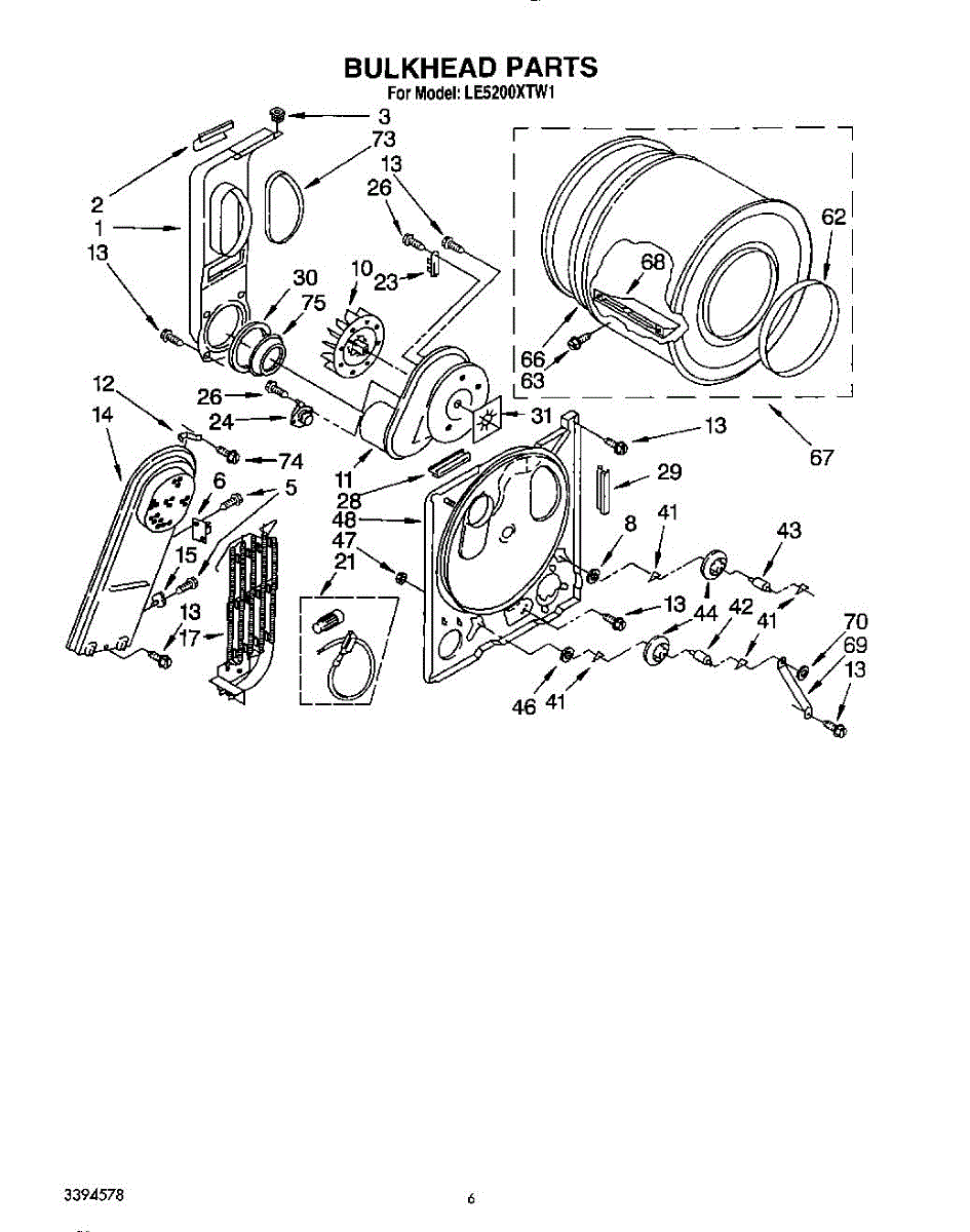 Replacement drum front bulkhead for dryers. Installs at the front of the drum assembly. Needed when original is cracked, damaged, or worn out.