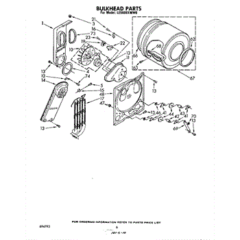Replacement drum front bulkhead for dryers. Installs at the front of the drum assembly. Needed when original is cracked, damaged, or worn out.