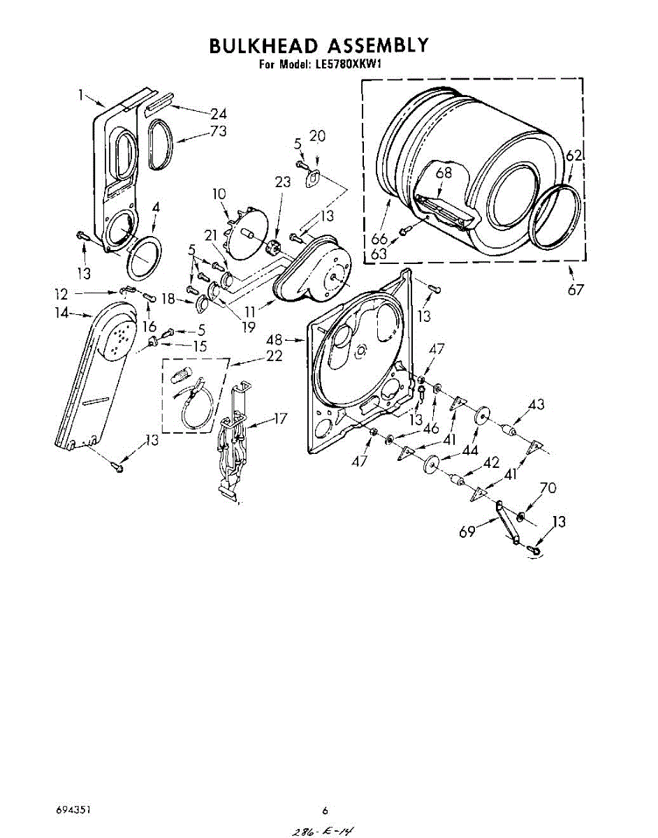 Replacement drum front bulkhead for dryers. Installs at the front of the drum assembly. Needed when original is cracked, damaged, or worn out.