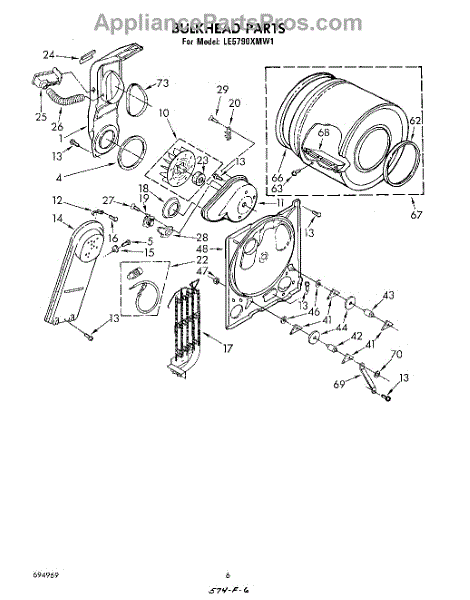 Replacement drum baffle that lifts and tumbles clothes inside the dryer for more even drying and helps prevent garments from snagging. Restores proper drum agitation to reduce noise and improve drying performance. What it does: