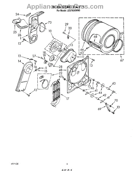 Replacement drum baffle that lifts and tumbles clothes inside the dryer for more even drying and helps prevent garments from snagging. Restores proper drum agitation to reduce noise and improve drying performance. What it does: