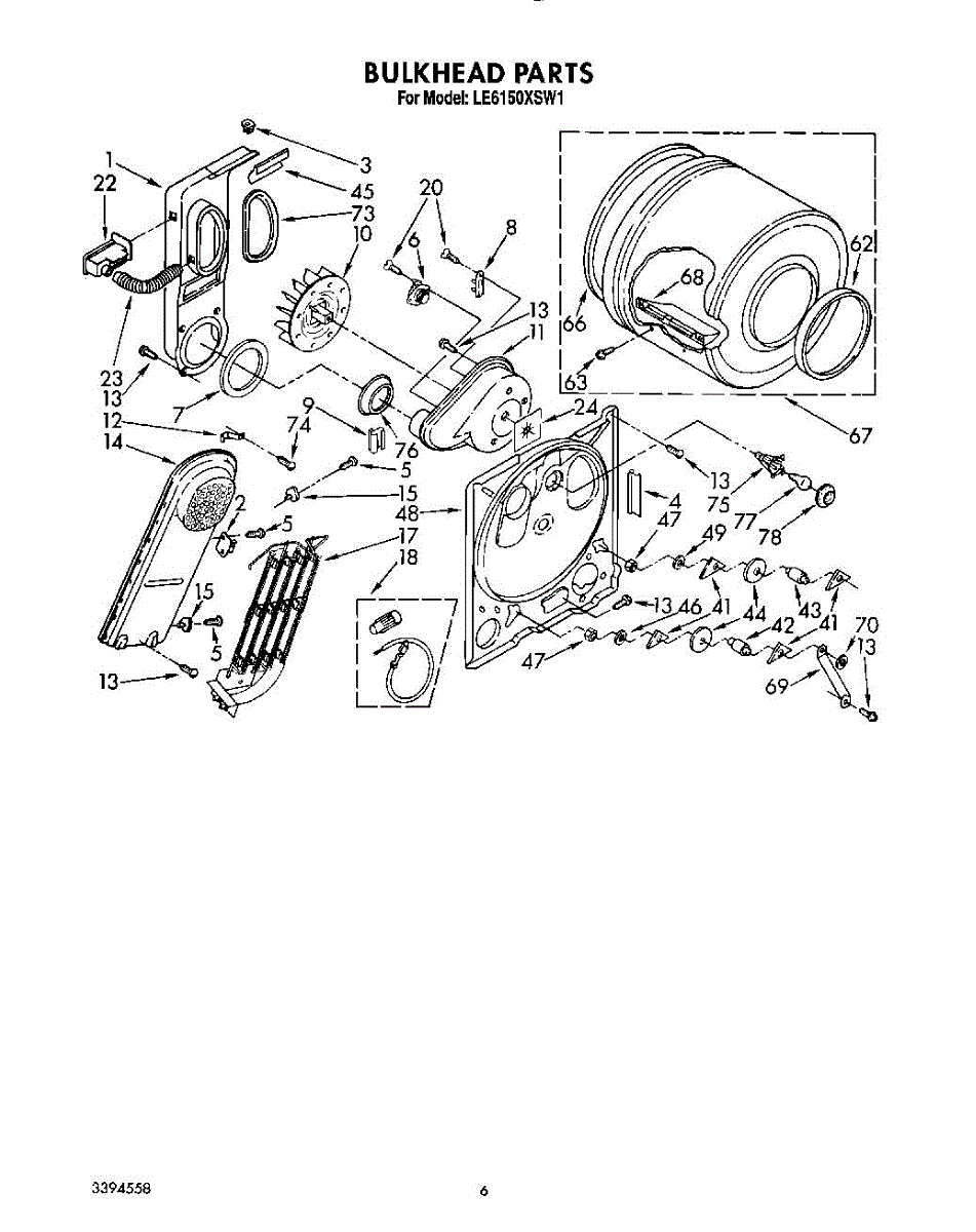 Replacement drum front bulkhead for dryers. Installs at the front of the drum assembly. Needed when original is cracked, damaged, or worn out.