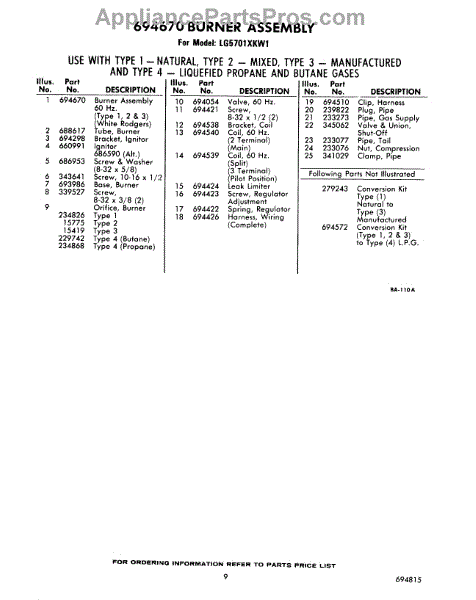 Parts for LG5701XKW1