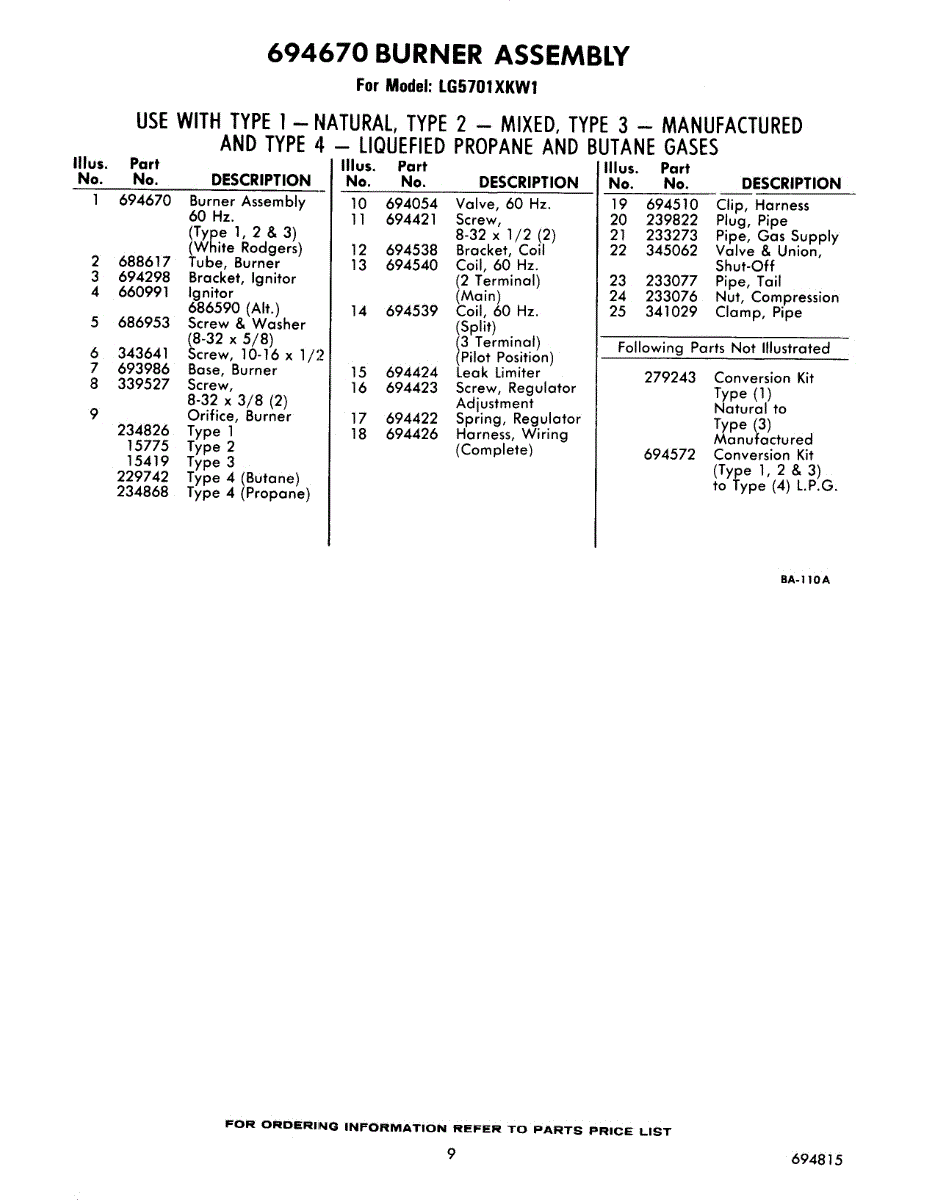 Parts for Whirlpool LG5701XKW1: 09 - Section Parts