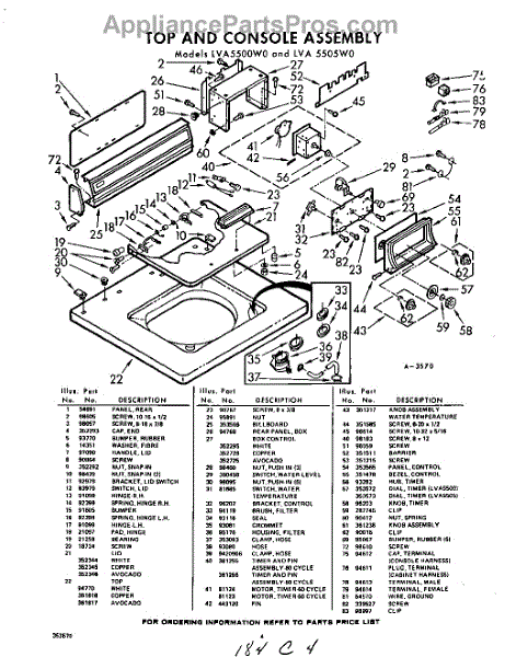 Parts for Whirlpool LVA5505W0: 04 - Section Parts
