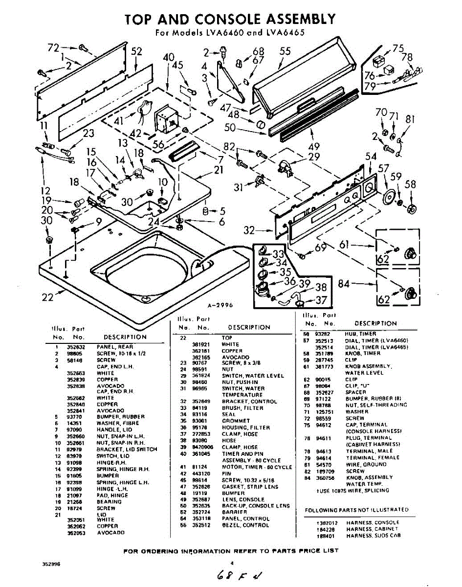 Parts for Whirlpool LVA6460W0: 04 - Section Parts