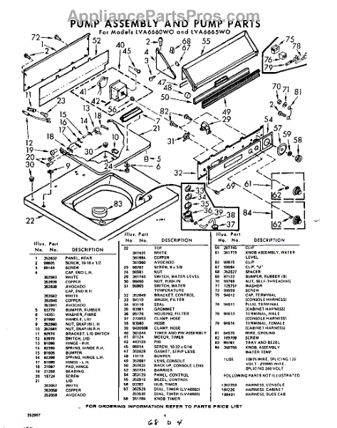 Parts for Whirlpool LVA6660W0: 04 - Section Parts