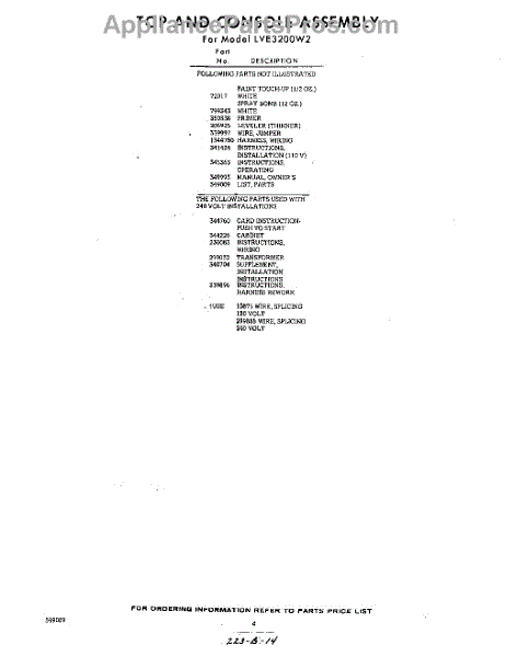 Parts for LVE3200W2