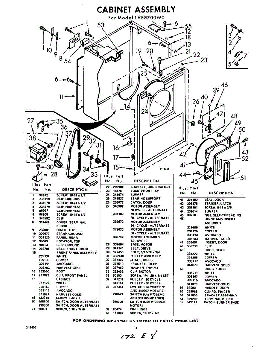 Parts for Whirlpool LVE8700W0: 04 - Section Parts