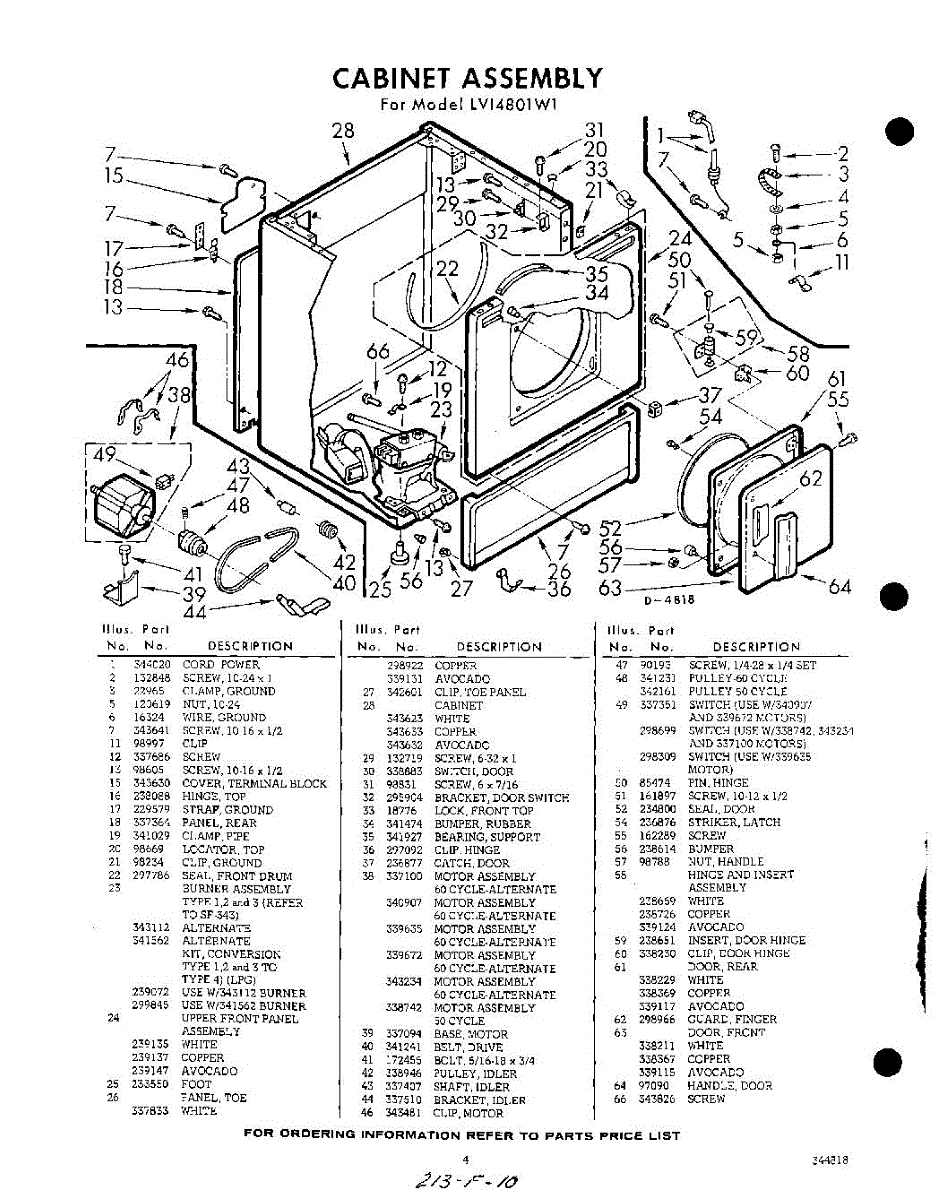 Parts for Whirlpool LVI4801W1: 04 - Section Parts