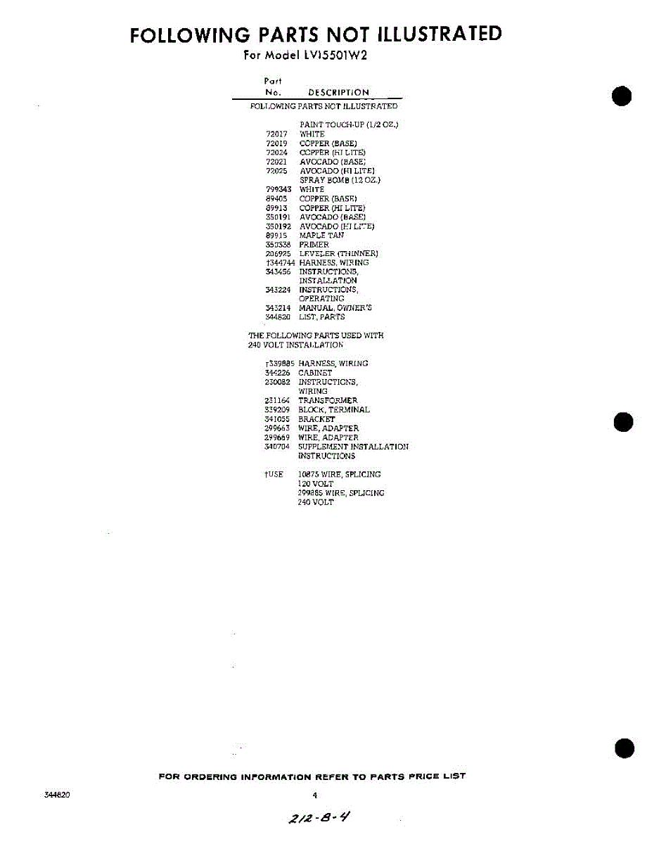 Parts for LVI5501W2