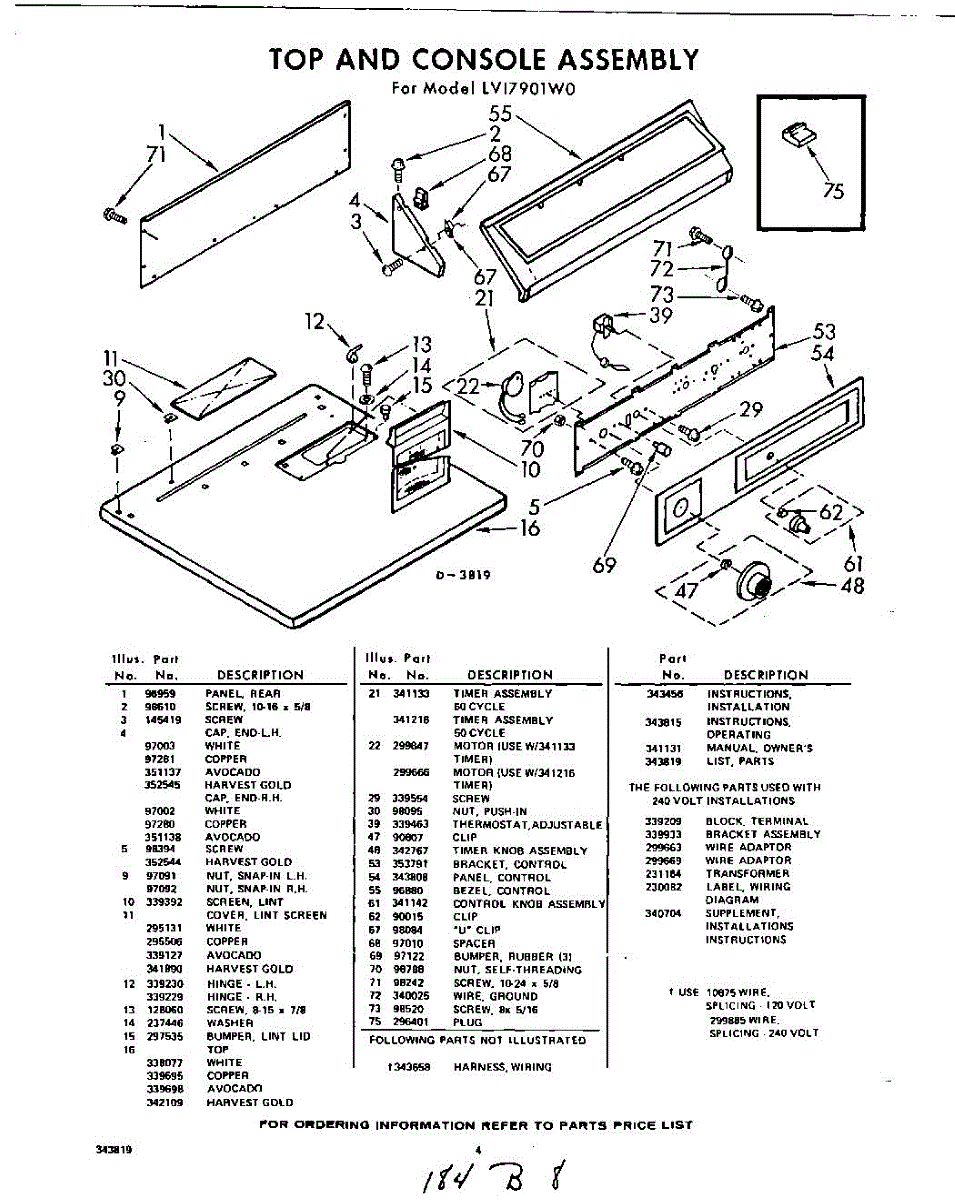 Parts for Whirlpool LVI7901W0: 04 - Section Parts