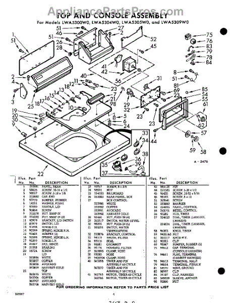 Parts for Whirlpool LWA5309W0: 04 - Section Parts