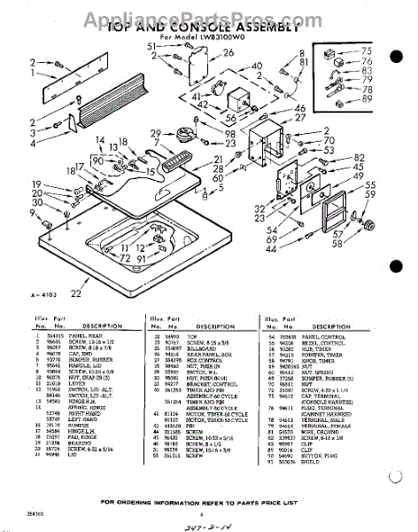 Parts for Whirlpool LWB3100W0: 04 - Section Parts