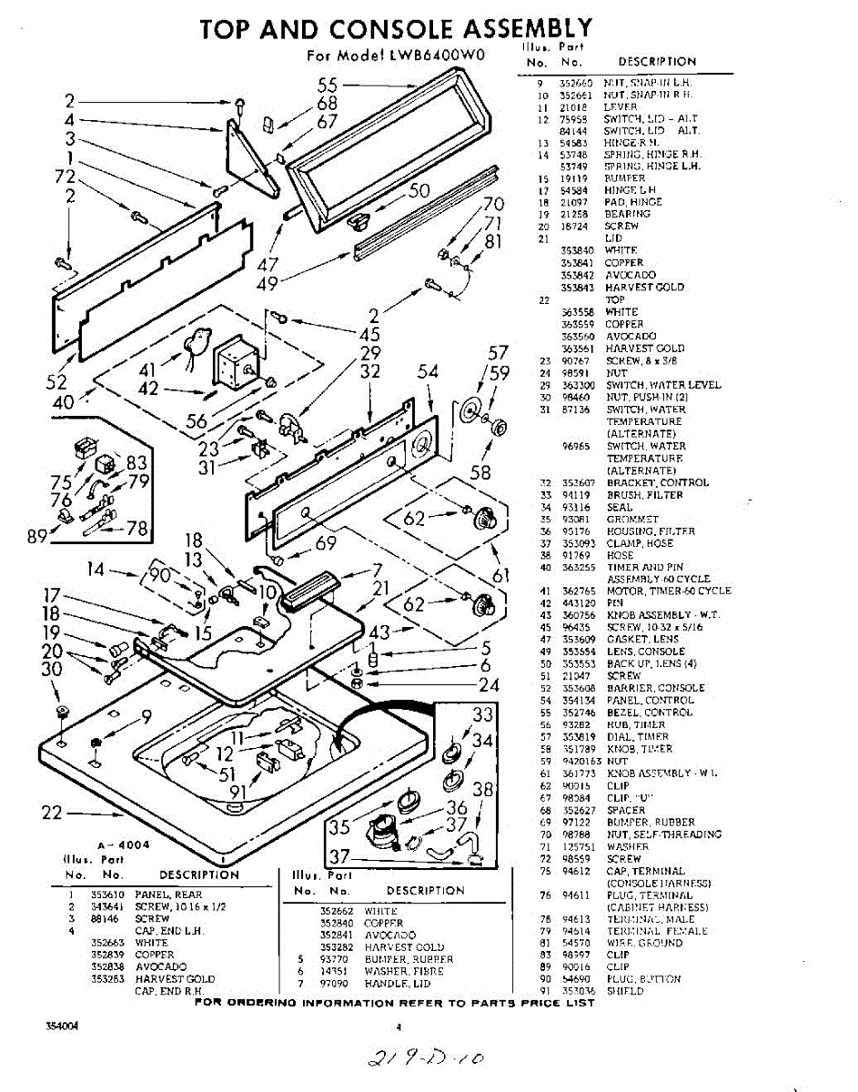 Parts for Whirlpool LWB6400W0: 04 - Section Parts