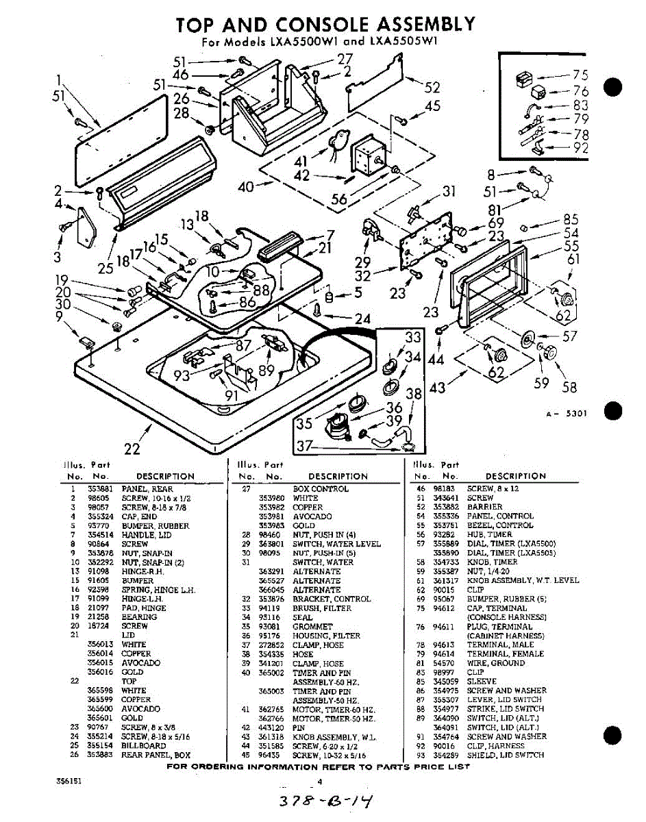 Parts for Whirlpool LXA5500W1: 04 - Section Parts