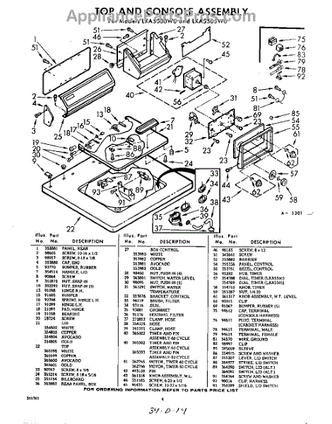 Parts for Whirlpool LXA5505W0: 04 - Section Parts