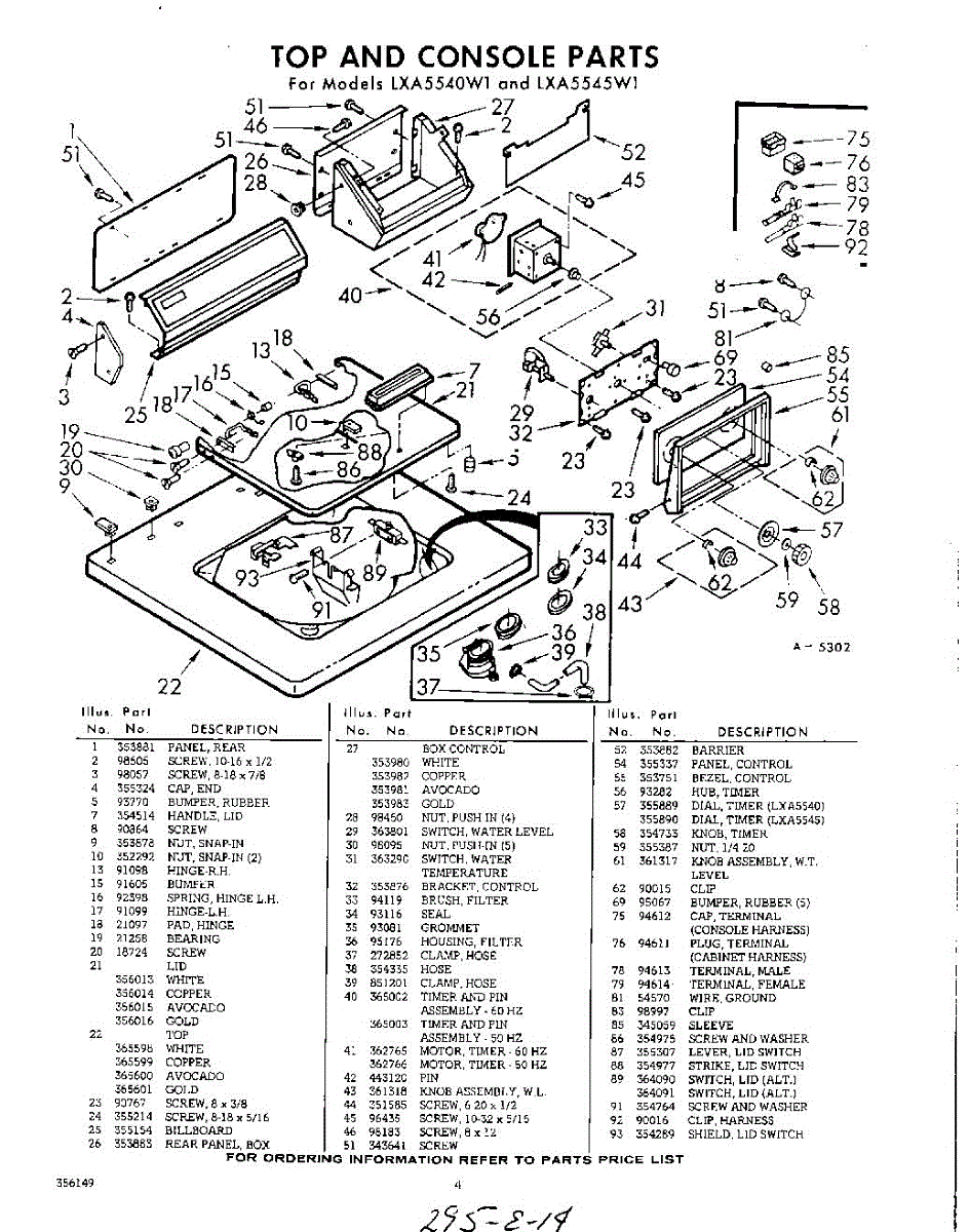 Parts for Whirlpool LXA5540W1: 04 - Section Parts