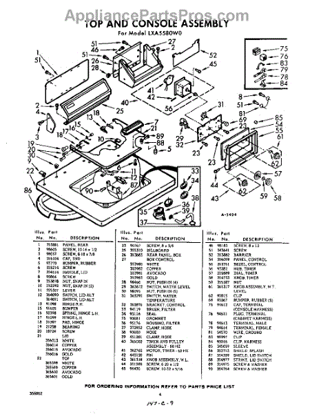 Parts for Whirlpool LXA5580W0: 04 - Section Parts