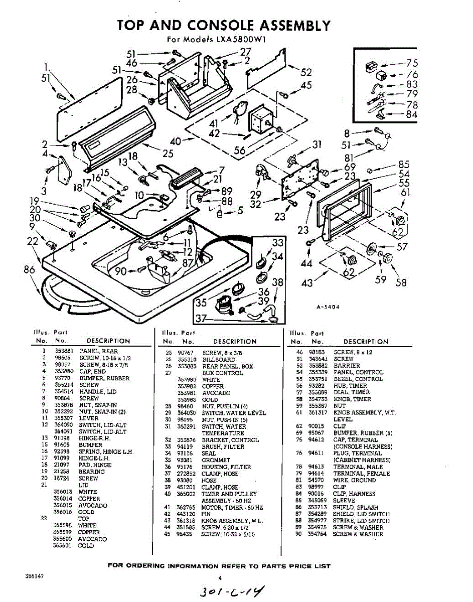 Parts for Whirlpool LXA5800W1: 04 - Section Parts
