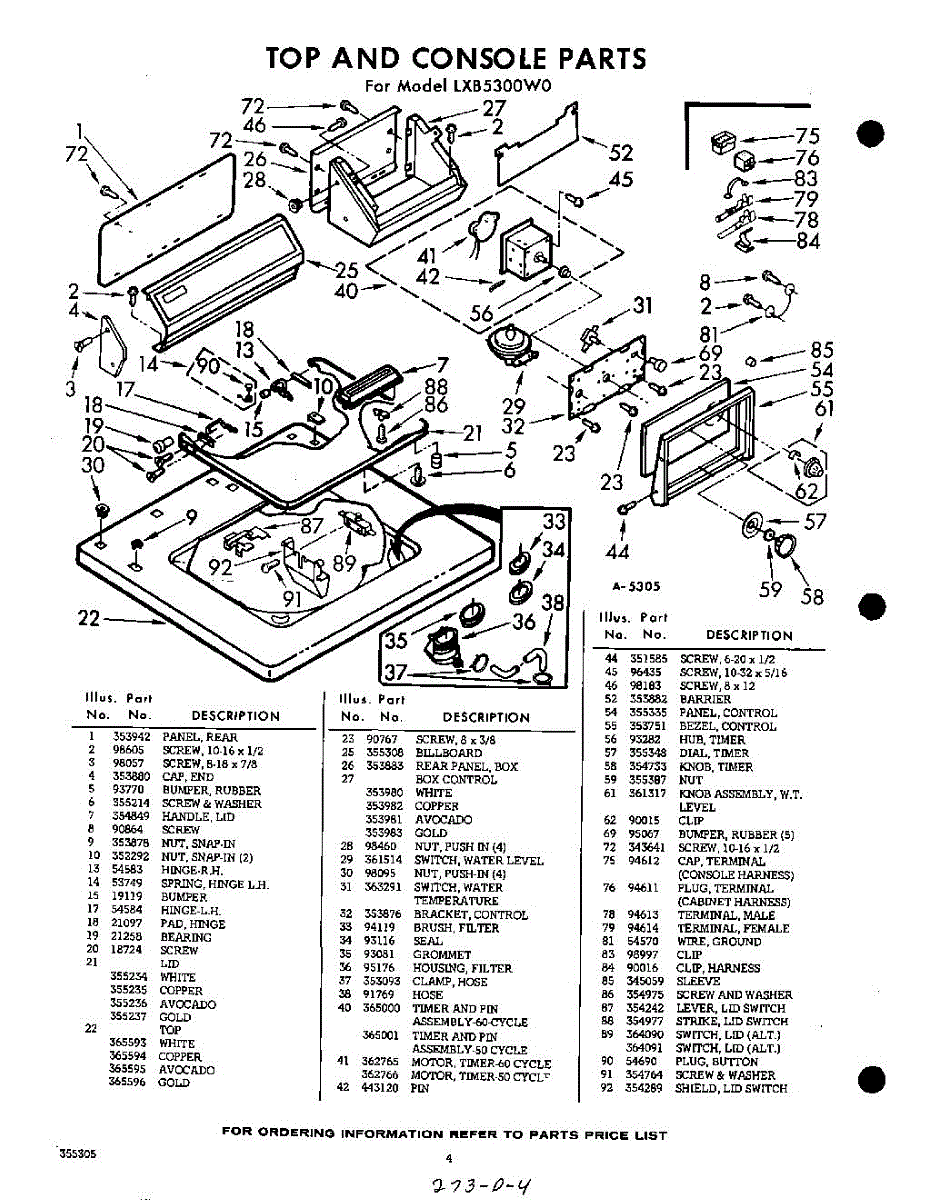 Parts for Whirlpool LXB5300W0: 04 - Section Parts