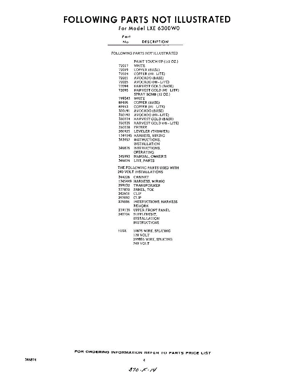 Parts for Whirlpool LXE6300W0: 04 - Section Parts