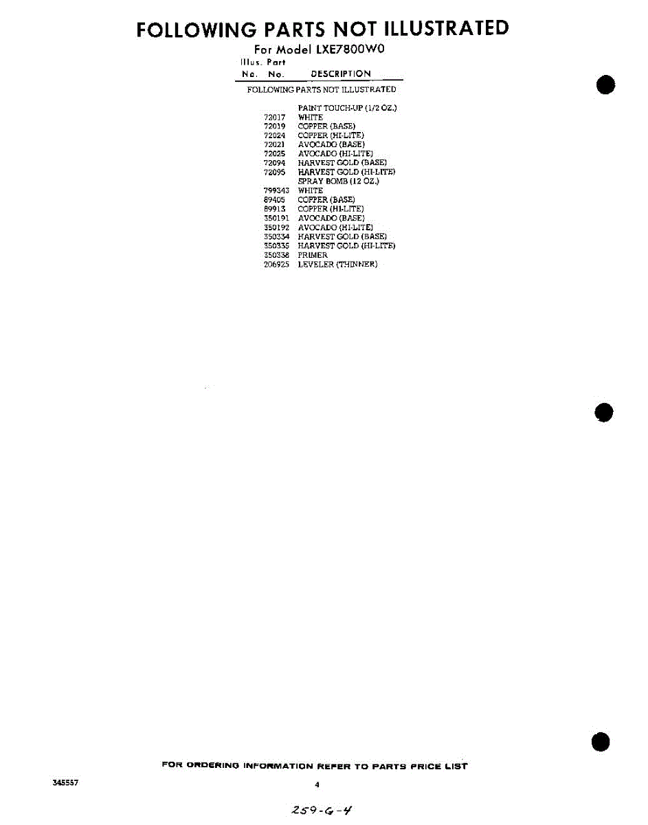 Parts for LXE7800W0